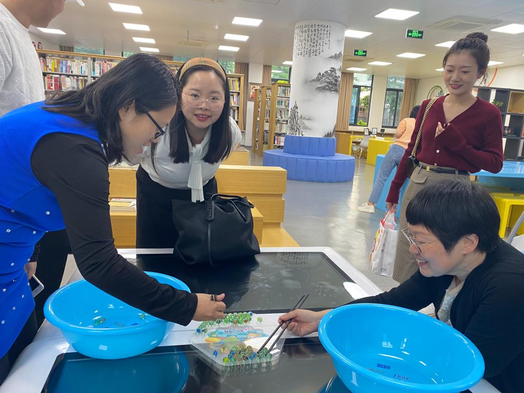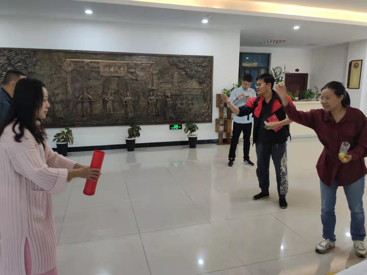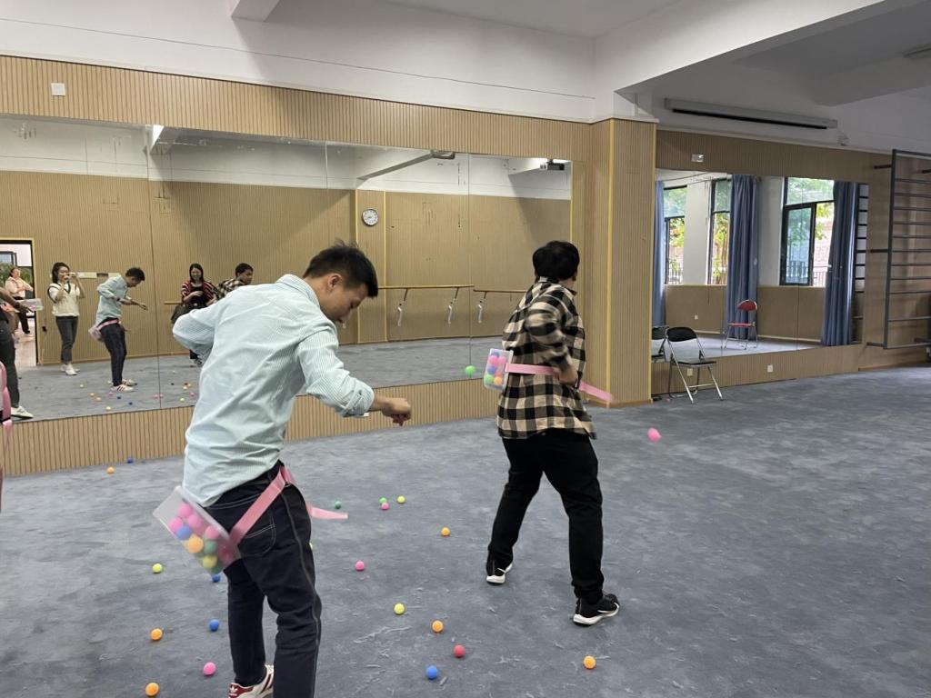趣味游園會活動主要有巧接彩珠、公雞下蛋、乒乓球快跑、筷子夾球、你來比劃我來猜、紙杯傳遞等6個游園項目。活動現(xiàn)場輕松活躍,熱鬧非凡。公雞下蛋、乒乓球快跑等充滿童年記憶的個人游園項目讓參與其中的每位老師在重溫兒時游戲中不禁笑臉盈盈。紙杯傳遞、巧接彩珠等趣味與協(xié)作并存的團體項目更是讓老師們體驗到相互之間齊心協(xié)力、默契配合的幸福與欣喜。