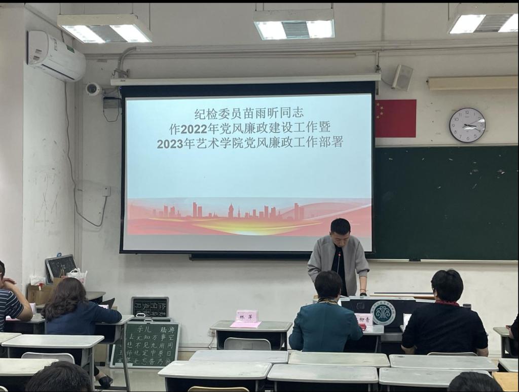 會上,藝術(shù)學院黨委書記江柳青首先回顧總結(jié)了學院2022年落實全面從嚴治黨情況,充分肯定了學院全面從嚴治黨工作所取得的成效,并指出存在的問題和差距,詳細部署了學院2023年全面從嚴治黨工作計劃。