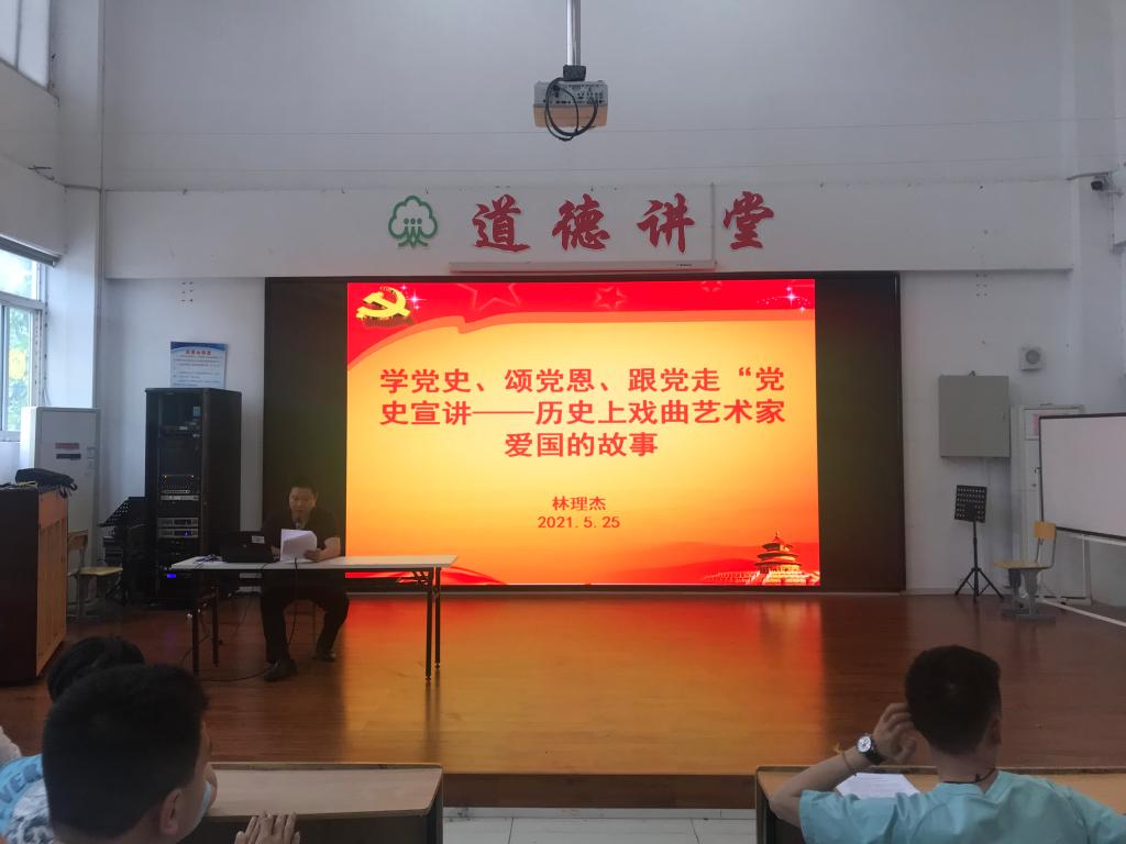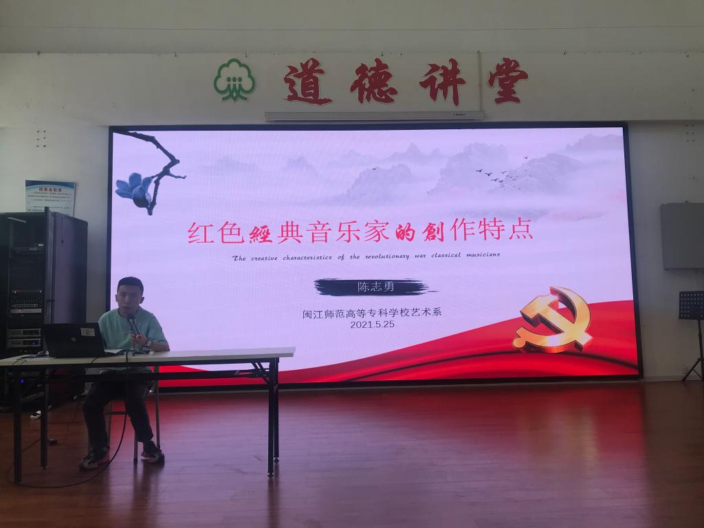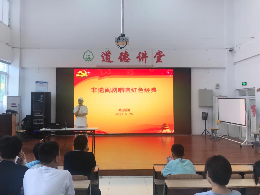 5月25日中午,甘蔗校區(qū)的黨史宣講會如火如荼地進(jìn)行著,甘蔗校區(qū)全體中職學(xué)生參加學(xué)習(xí)。系黨總支宣傳委員陳志勇以《紅色經(jīng)典音樂家的創(chuàng)作特點(diǎn)》為主題,帶領(lǐng)學(xué)生學(xué)習(xí)了紅色經(jīng)典音樂家的創(chuàng)作特點(diǎn),讓莘莘學(xué)子了解了紅色經(jīng)典音樂作品中的黨史故事。系黨總支組織委員林理杰以《歷史上戲曲藝術(shù)家的愛國故事》為主題,激勵(lì)師生不忘初心、傳承非遺,在奮斗中書寫鯤鵬擊浪的青春華章。系黨總支統(tǒng)戰(zhàn)委員、副主任陳洪翔以《非遺閩劇唱響紅色經(jīng)典》為主題,介紹了紅色題材的閩劇作品,帶領(lǐng)學(xué)生追憶革命烈士的偉大事跡,引導(dǎo)學(xué)生弘揚(yáng)革命精神,傳承中華優(yōu)秀傳統(tǒng)文化,創(chuàng)作更多更好的文藝精品。系黨總支副書記林萍以《砥礪初心使命 汲取奮進(jìn)力量》為主題,為師生講述了我校杰出校友翁良毓的革命故事及我系創(chuàng)作閩劇現(xiàn)代劇《青春祭》的重要意義,強(qiáng)調(diào)廣大師生要自覺接受紅色傳統(tǒng)教育,賡續(xù)紅色血脈,弘揚(yáng)革命精神,擔(dān)負(fù)時(shí)代使命。