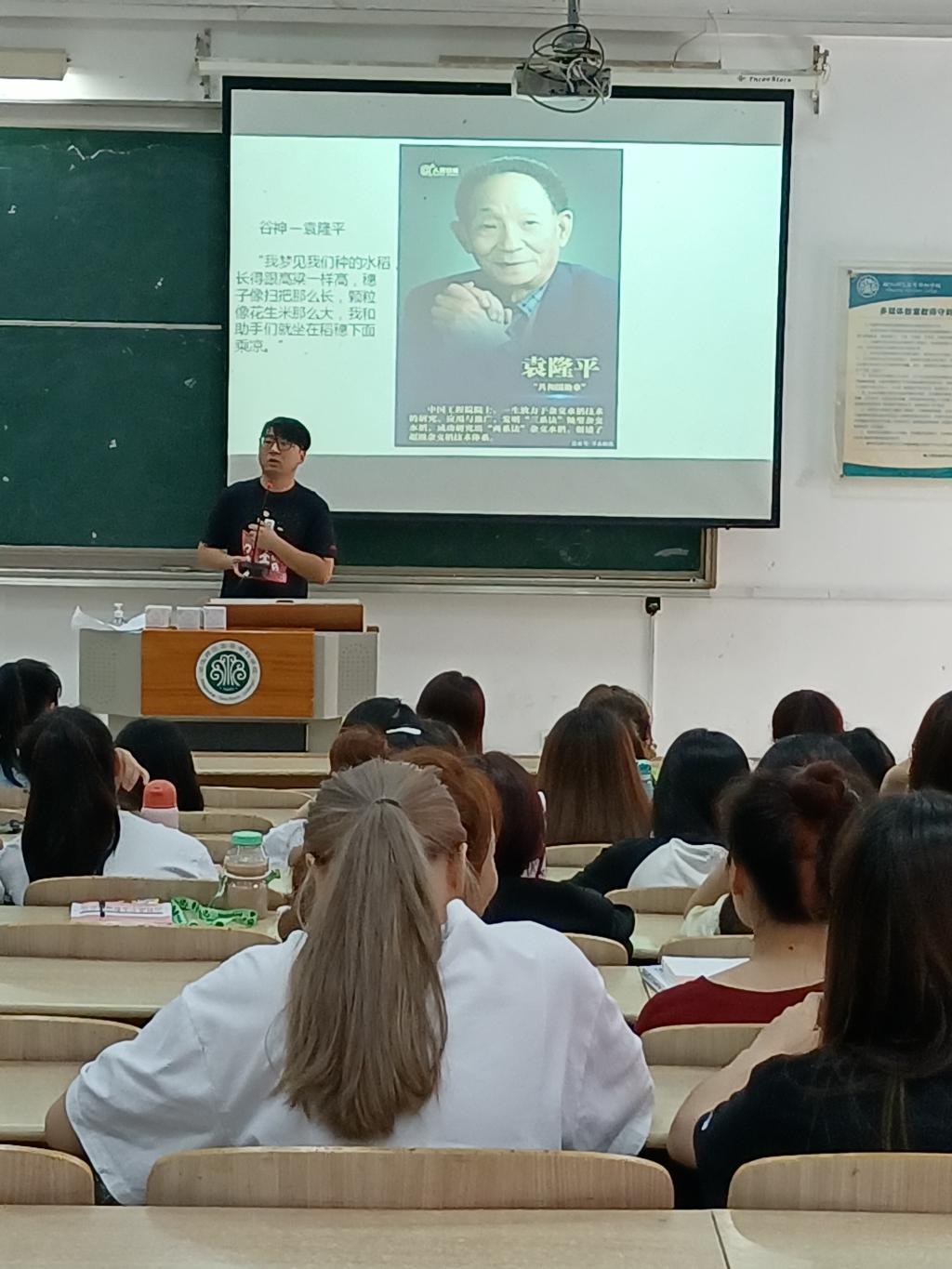 5月23日中午,系黨總支青年委員、團(tuán)委書記、學(xué)生黨支部書記周宇航在旗山校區(qū)為藝術(shù)系20級全體學(xué)生上了一堂《那些國士無雙的功勛們》主題課。他首先講授了“共和國勛章”獲得者袁隆平爺爺?shù)纳绞论E,并帶領(lǐng)全體學(xué)生起立為袁隆平爺爺默哀。默哀儀式結(jié)束之后,他繼續(xù)分享了兩彈元?jiǎng)奏嚰谙?、火箭之父錢學(xué)森、現(xiàn)代印刷術(shù)之領(lǐng)軍人物王選、嫦娥之父歐陽自遠(yuǎn)、中國首位科學(xué)類諾貝爾獎(jiǎng)獲得者屠呦呦、抗疫英雄鐘南山等大國功勛的偉大貢獻(xiàn),并鼓勵(lì)同學(xué)們努力做到學(xué)史明理、學(xué)史增信、學(xué)史崇德、學(xué)史力行。