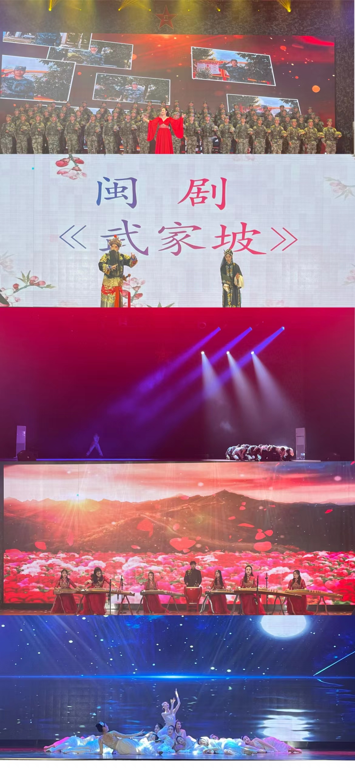 在“祖國不會忘記”——2021年度冬季退伍老兵專題晚會中,我系師生們獻演了女聲獨唱《祖國不會忘記》、舞蹈《榮耀的子彈》、《月映雙行》、閩劇選段《武家坡》、民樂合奏《盛世國樂》等節(jié)目。優(yōu)雅動人的舞蹈,悅耳動聽的歌聲,化作最美好的回憶和最真摯的祝福,送給即將光榮退役的老兵們,謳歌了軍民魚水之情和為祖國的國防建設(shè)無私奉獻、默默堅守的老兵們。整場演出精彩紛呈、催人奮進,主題鮮明、氣氛熱烈,情感真摯、震撼人心。師生們用生動的藝術(shù)形式表達了向老兵學(xué)習(xí)、向老兵致敬之情,為即將退伍的老兵留下了一個美好的回憶。