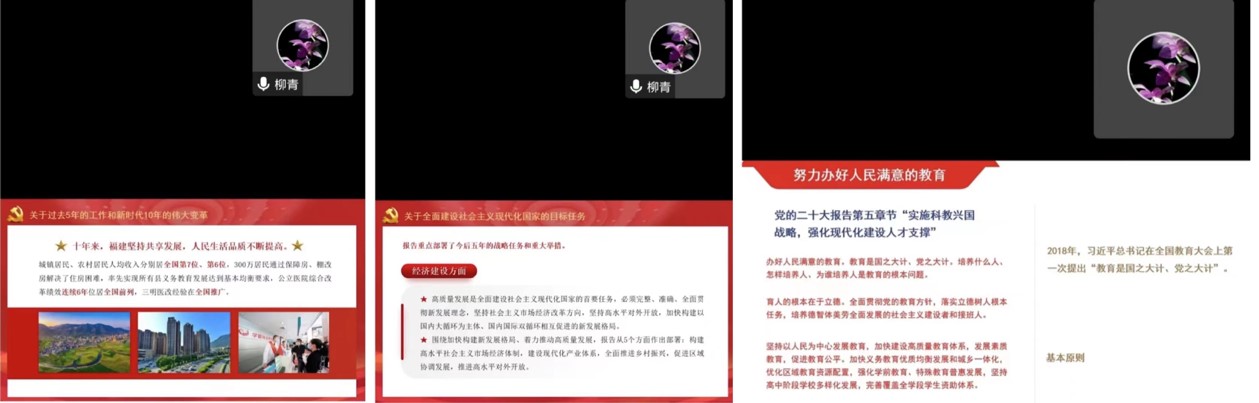 會(huì)上,江柳青書記以《學(xué)習(xí)貫徹黨的二十大精神努力辦好人民滿意的教育》為題作黨的二十大精神宣講報(bào)告。江書記從黨的二十大主題及主要成果、過去5年的工作和新時(shí)代10年的偉大變革、馬克思主義中國(guó)化時(shí)代化、中國(guó)式現(xiàn)代化,全面建設(shè)社會(huì)主義現(xiàn)代化國(guó)家的目標(biāo)任務(wù)、堅(jiān)持黨的全面領(lǐng)導(dǎo)和全面從嚴(yán)治黨等六個(gè)方面對(duì)黨的二十大精神進(jìn)行全面系統(tǒng)深入的宣講解讀。同時(shí),她結(jié)合工作實(shí)際,對(duì)報(bào)告中“實(shí)施科教興國(guó)戰(zhàn)略,強(qiáng)化現(xiàn)代化建設(shè)人才支撐”的有關(guān)精神進(jìn)行了詳細(xì)的解讀,強(qiáng)調(diào)要堅(jiān)持為黨育人、為國(guó)育才,努力辦好人民滿意的教育。