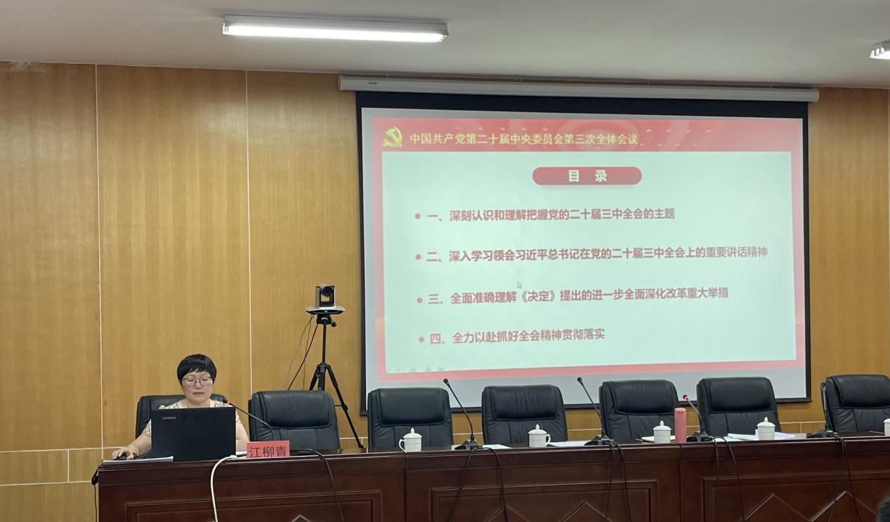江柳青緊密結(jié)合學(xué)院實際工作,從深刻認(rèn)識和理解把握黨的二十屆三中全會的主題、深入學(xué)習(xí)領(lǐng)會習(xí)近平總書記在黨的二十屆三中全會上的重要講話精神、全面準(zhǔn)確理解全會《決定》提出的進(jìn)一步全面深化改革重大舉措、全力以赴抓好全會精神貫徹落實等方面,進(jìn)行了系統(tǒng)宣講和深入闡述。