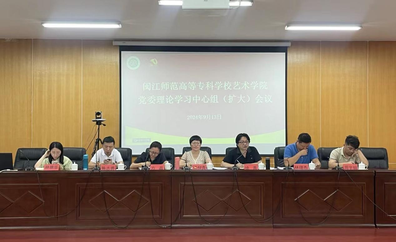 2024年9月13日下午,藝術(shù)學(xué)院黨委在甘蔗校區(qū)五樓會議室召開黨委理論學(xué)習(xí)中心組(擴(kuò)大)學(xué)習(xí)會議,會議傳達(dá)學(xué)習(xí)了習(xí)近平總書記近期重要講話精神及習(xí)近平總書記關(guān)于黨紀(jì)教育的重要講話和指示精神,院黨委書記江柳青作黨的二十屆三中全會精神宣講報告。藝術(shù)學(xué)院黨委委員、黨政聯(lián)席會成員、學(xué)院中層干部及全體黨員參加,會議由黨委書記江柳青主持。