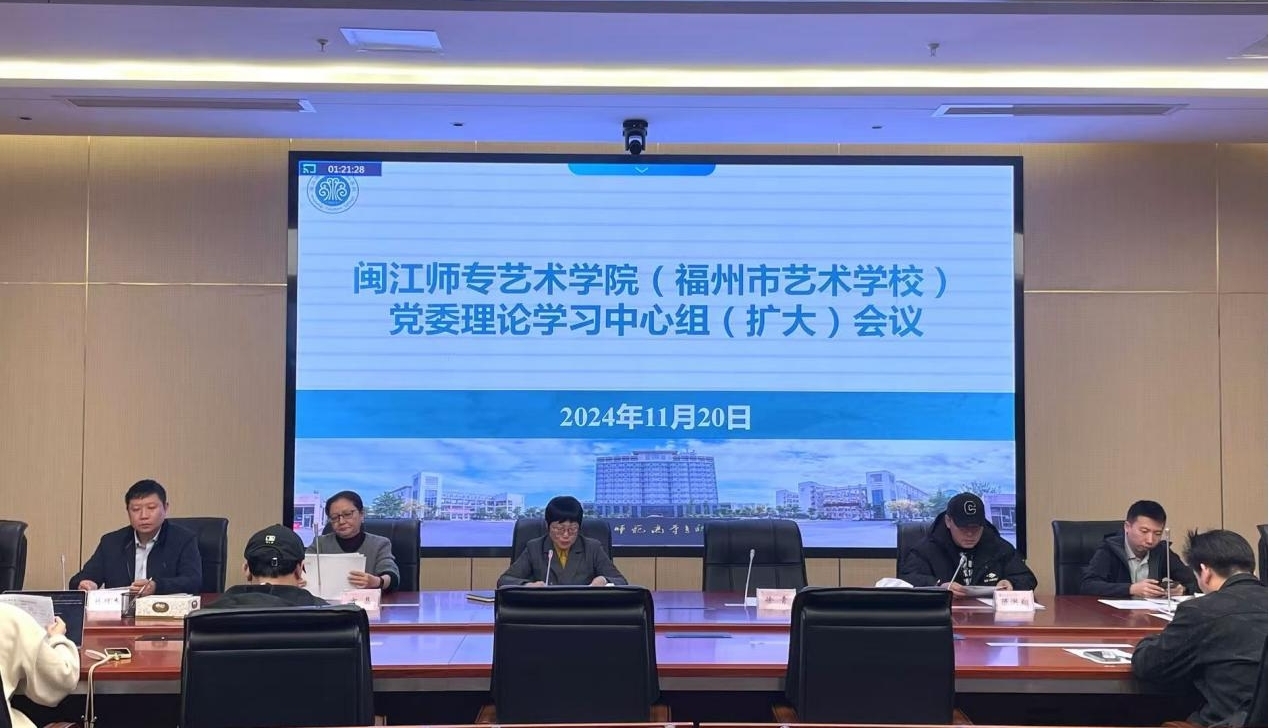 2024年11月20日,藝術(shù)學(xué)院黨委理論學(xué)習(xí)中心組在圖書館一樓會議室召開(擴(kuò)大)學(xué)習(xí)會,傳達(dá)學(xué)習(xí)習(xí)近平總書記近期重要講話、回信精神。會議由副校長、藝術(shù)學(xué)院黨委書記江柳青主持,藝術(shù)學(xué)院黨委委員、黨政聯(lián)席會成員及學(xué)院中層干部參加。