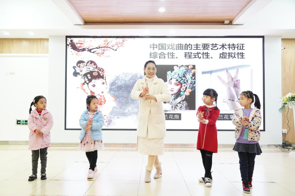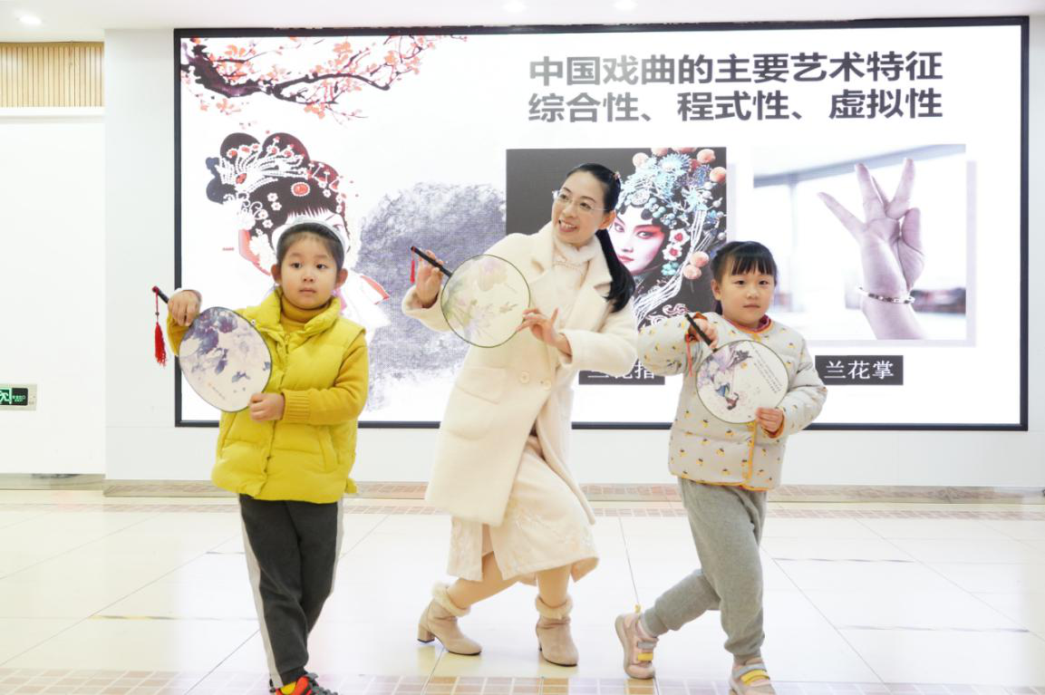 中國(guó)戲曲在扮相、服裝、表演手段等方面加以區(qū)分,形成了不同的“行當(dāng)”。隨后陳老師結(jié)合圖文,用通俗易懂的方式,讓在場(chǎng)的老師和小朋友們認(rèn)識(shí)了青衣、花旦、閨門旦、刀馬旦、小旦、小生、老生、花臉、武生等角色……