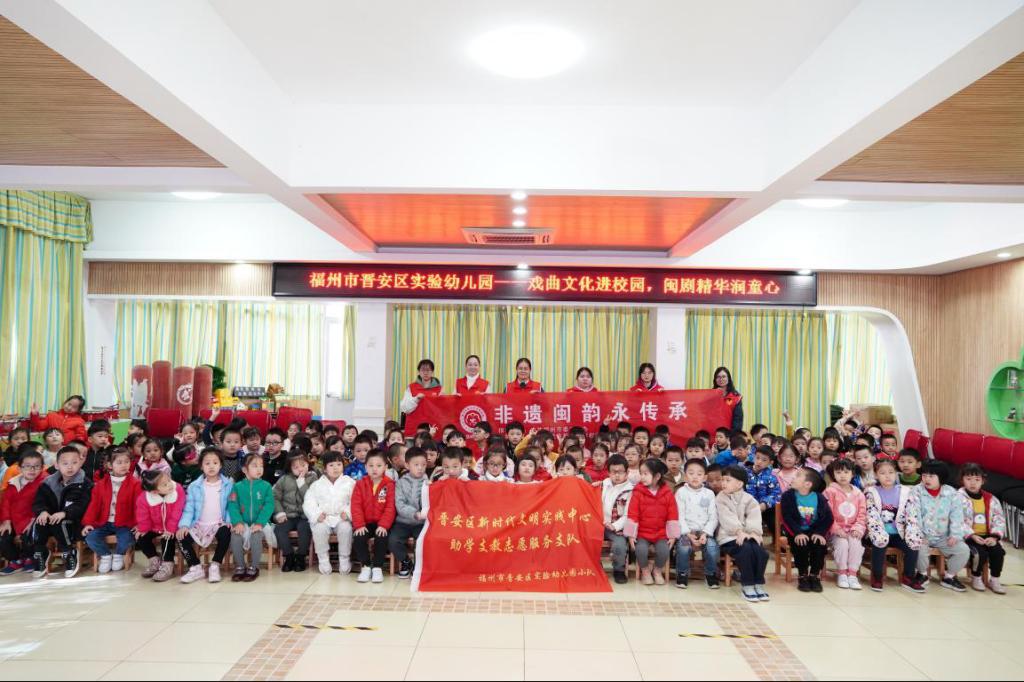 閩劇又稱福州戲,是一種無形的歷史文化遺產(chǎn)。為了弘揚(yáng)中華傳統(tǒng)文化,傳承戲曲經(jīng)典,讓非遺文化走進(jìn)校園,讓非遺文化扎根教育,讓文化自信從小根植孩子幼小的心靈中,2021年12月3日,在福州市委文明辦的指導(dǎo)下,閩江師范高等專科學(xué)校藝術(shù)系(福州市藝術(shù)學(xué)校)黨員教師陳菲與幾名志愿者赴晉安區(qū)實(shí)驗(yàn)幼兒園,與小朋友們一同感受了非遺文化的魅力。
