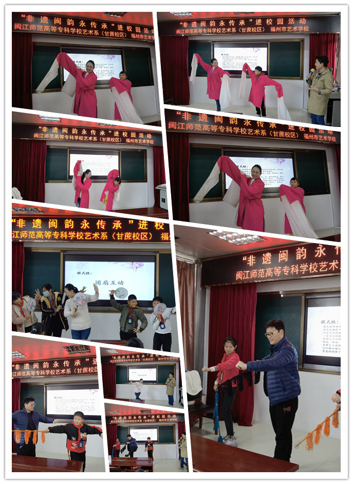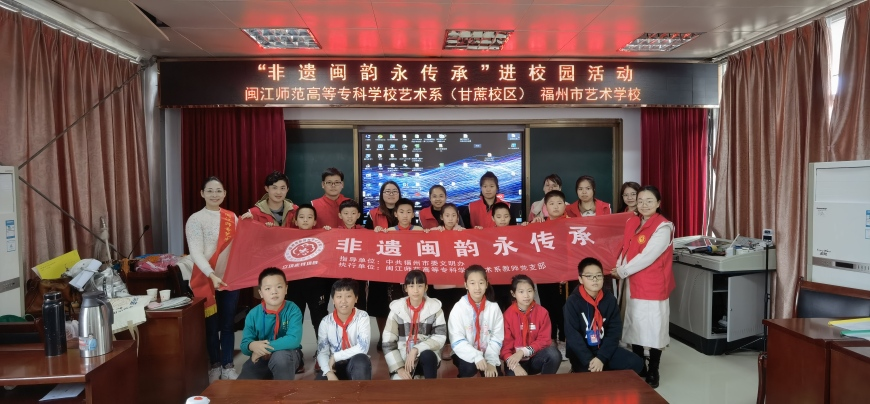 2021年11月24日,在福州市委文明辦的指導(dǎo)下,閩江師范高等??茖W(xué)校藝術(shù)系(福州市藝術(shù)學(xué)校)教師支部3名黨員教師赴閩侯縣小箬中心小學(xué)進行“非遺閩韻永傳承”文化藝術(shù)進校園活動。