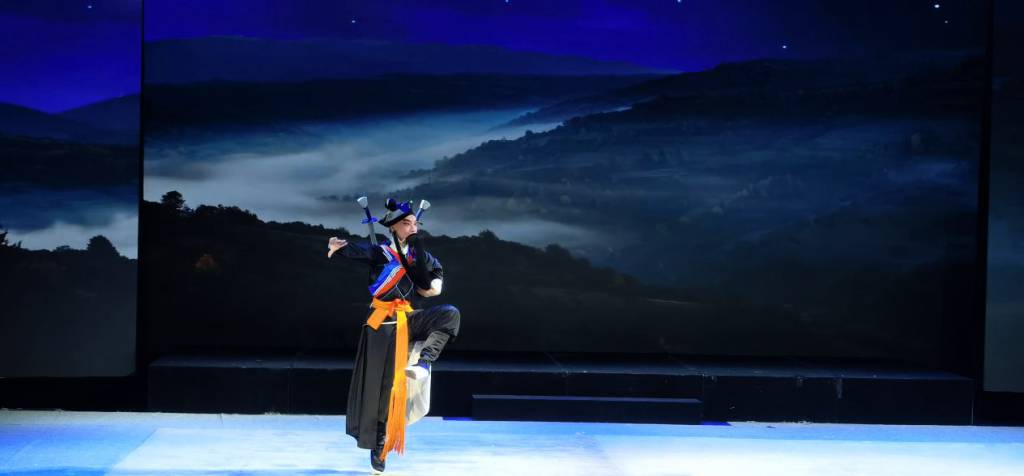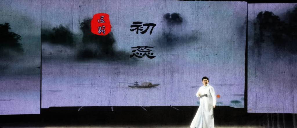 整場演出共9個節(jié)目,以初蕊、繽紛、粉墨、怒放四個主題貫穿。開場以戲中戲的主持形式拉開了帷幕。接著,一曲十番音樂《雁來云》映入眼簾,只見臺上管弦齊奏,歌清曲妙,臺下觀眾座無虛席,喝彩聲聲?!败奋酚裰甘?,曼妙舞水袖,搖曳出金蓮,婀娜風(fēng)擺柳”是對舞蹈《印心》最美的詮釋。還有精彩紛呈的閩劇折子戲:文武兼?zhèn)涞摹断锤∩健?、俏皮可愛的《思凡》、摔撲跌打的《施智伯寫狀》、《打金磚》、唱做俱佳的《癡夢》以及掌聲響徹全場的《戰(zhàn)金山》。最為獨具匠心,讓人耳目一新的當(dāng)屬以福州鄉(xiāng)音講述并穿插吟唱的獨特說書形式的福州評話《絆尾叔》——緊湊風(fēng)趣、富有懸念。在場領(lǐng)導(dǎo)嘉賓紛紛點頭稱道,閩劇未來可期。