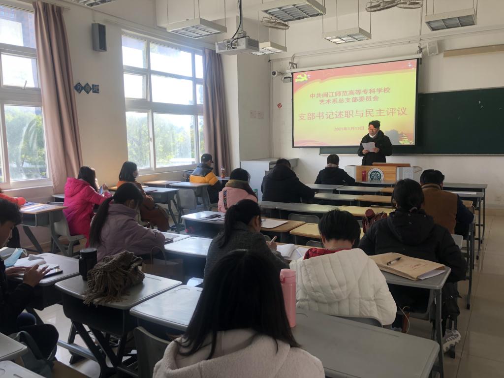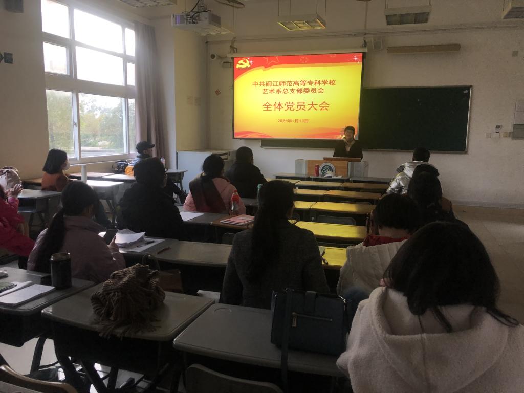 2021年1月13日下午,藝術(shù)系黨總支在旗山校區(qū)召開全體黨員大會,進行支部書記述職評議和黨員理論學(xué)習(xí)。