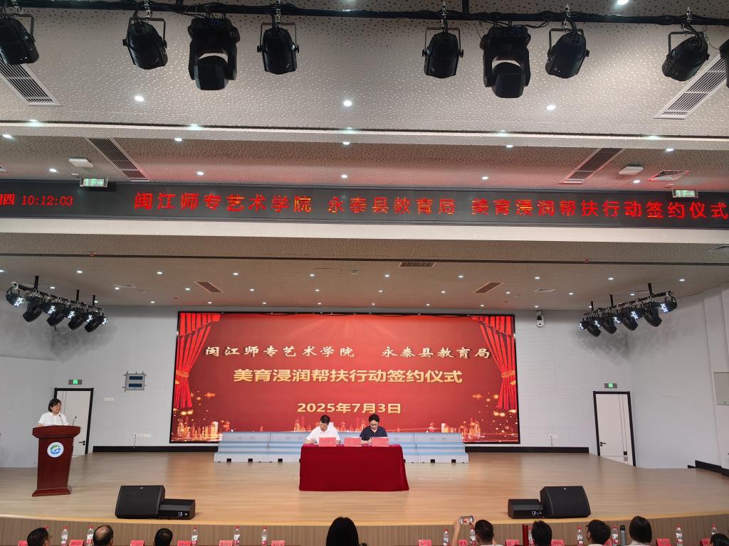 2025年7月3日上午9:30,閩江師范高等??茖W(xué)校藝術(shù)學(xué)院與永泰縣教育局美育浸潤(rùn)幫扶行動(dòng)合作協(xié)議簽約儀式在永泰縣實(shí)驗(yàn)小學(xué)教育集團(tuán)劉岐分校多功能廳順利舉行。雙方代表及永泰縣多所中小學(xué)相關(guān)負(fù)責(zé)人齊聚一堂,共同開啟美育合作新篇章,助力永泰縣美育事業(yè)高質(zhì)量發(fā)展。