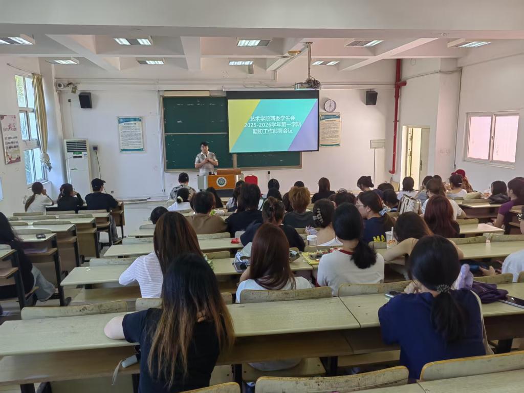 為科學(xué)謀劃新學(xué)期學(xué)生工作,進一步凝聚學(xué)院兩委學(xué)生會組織發(fā)展合力。2025年9月15日,藝術(shù)學(xué)院在旗山校區(qū)教學(xué)樓1014教室召開2025-2026學(xué)年第一學(xué)期兩委學(xué)生會期初工作部署會議。會議由藝術(shù)學(xué)院團委書記周宇航主持,藝術(shù)學(xué)院副院長陳洪翔、學(xué)生會指導(dǎo)老師沈錦城及全體兩委學(xué)生干部參加會議。