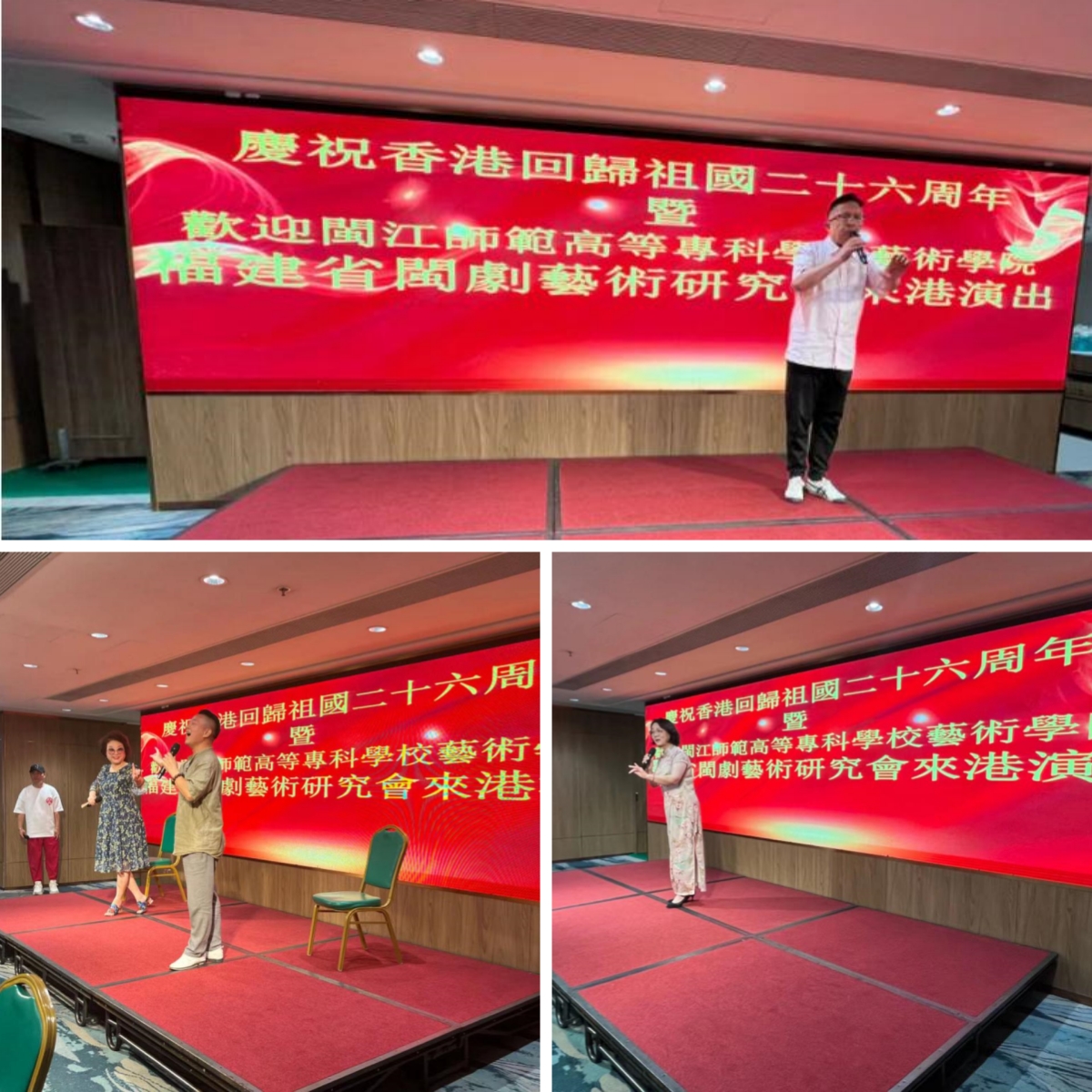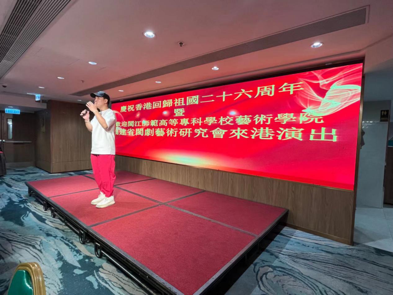 “生在福州城/話帶福州腔/祖宗留下風(fēng)水寶地/照我閩都泱泱”開嗓即巔峰,出場(chǎng)即高潮。7月3日晚,國(guó)家一級(jí)演員、梅花獎(jiǎng)得主、我校藝術(shù)學(xué)院副院長(zhǎng)陳洪翔用一首極具閩都風(fēng)土人情的歌曲《福州我親親的故鄉(xiāng)》,拉開了我校赴港文化交流演出團(tuán)與荃灣旅港鄉(xiāng)親“慶祝香港回歸祖國(guó)懷抱26周年”聯(lián)歡活動(dòng)的序幕,為在座100多位鄉(xiāng)親重現(xiàn)了風(fēng)水寶地閩都風(fēng)采,瞬間抓住了每位在場(chǎng)鄉(xiāng)親的心。