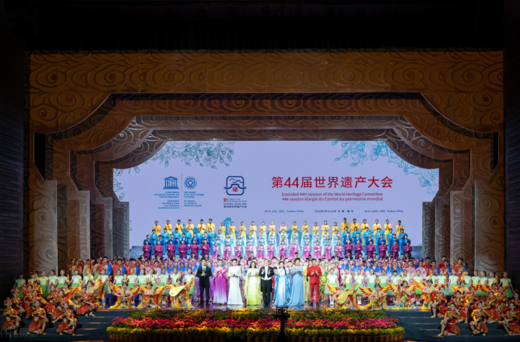 2021年7月藝術(shù)團(tuán)近200名學(xué)生參加第44屆世界遺產(chǎn)大會(huì)開(kāi)幕式文藝演出,參演了序幕樂(lè)舞《福迎八方》和尾聲歌舞《命運(yùn)與共》,在世界遺產(chǎn)大會(huì)的歷史舞臺(tái)上留下了屬于自己的青春詩(shī)篇。