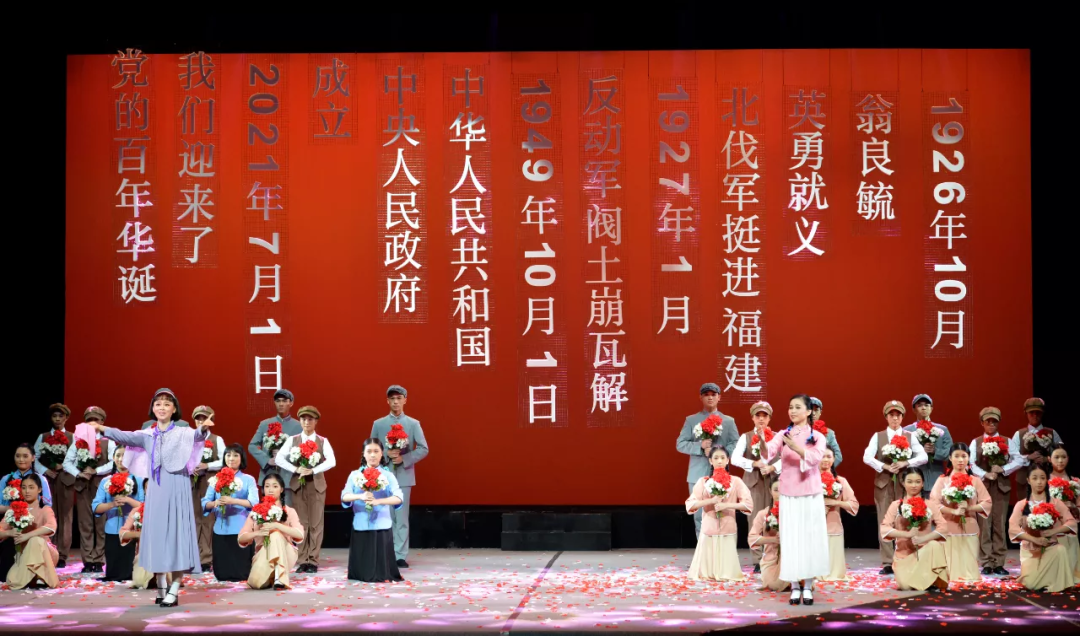 2021年學(xué)院傾心打造獻(xiàn)禮建黨100周年兩部年度大戲:情景歌舞劇《奔騰向?!泛烷}劇現(xiàn)代戲《青春祭》。情景歌舞劇《奔騰向?!纷鳛榈诎藢酶=ㄋ囆g(shù)節(jié)暨第五屆全省音樂(lè)舞蹈雜技曲藝優(yōu)秀?。ü?jié))目展演入選劇目在福州大學(xué)城文化藝術(shù)中心震撼亮相。200多名師生以歌以舞演繹著這座有著2200多年建成史的國(guó)家歷史文化名城——福州的故事。2023年情景歌舞劇《奔騰向?!酚衷诟=ù髣≡汉烷}江之心隆重開(kāi)演,演出吸引了8萬(wàn)余名線上觀眾觀看,點(diǎn)贊數(shù)超過(guò)了46萬(wàn)。